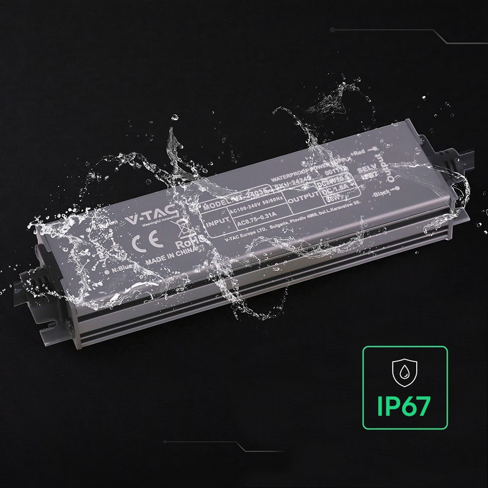 Zasilacz do LED hermetyczny SLIM V-TAC 36W 24V 1.5A IP67 filtr EMI VT-24035