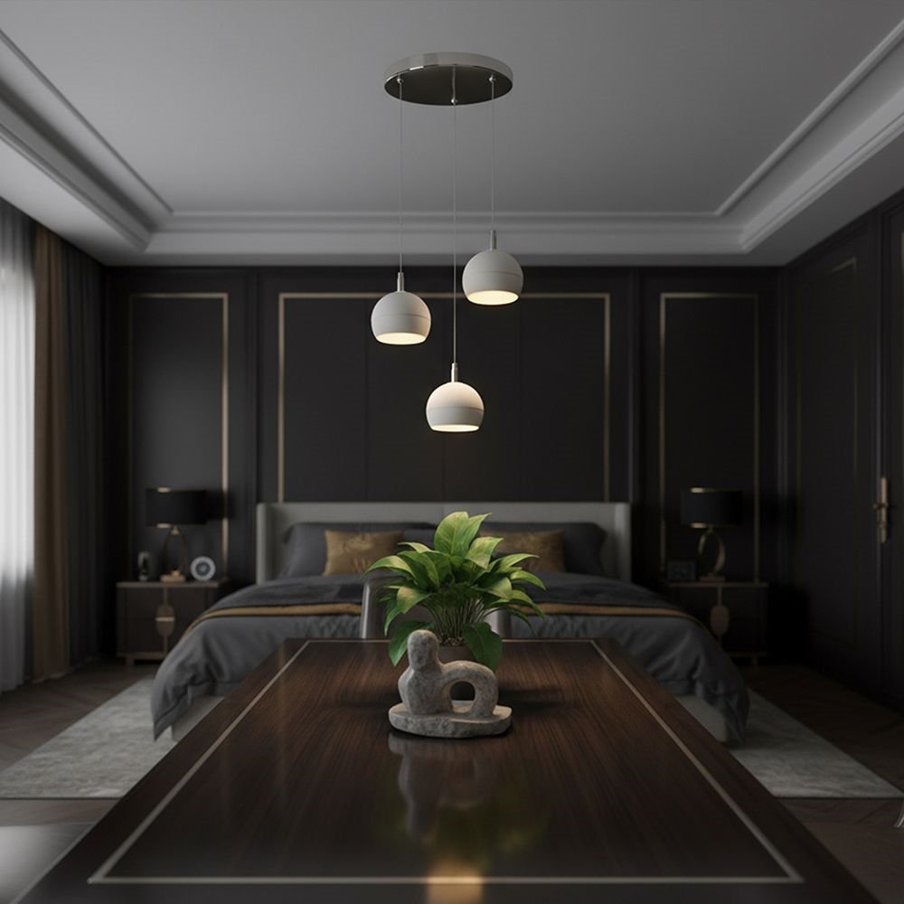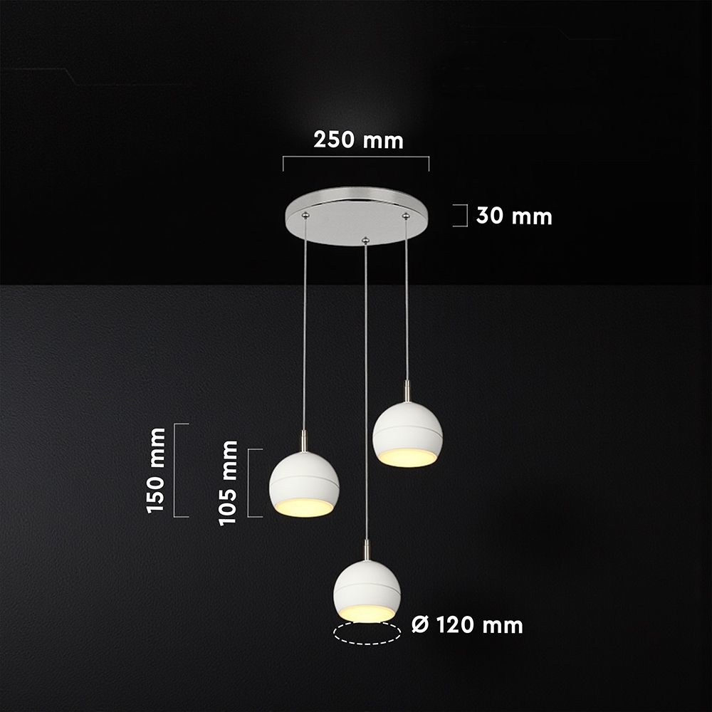Lampa wisząca V-TAC z trzema wbudowanymi modułami LED została zaprojektowana jako elegancki element nowoczesnych wnętrz. Trzy kuliste klosze w kolorze białym zawieszone na przewodach tworzą lekką, dekoracyjną kompozycję. Elementy w kolorze nikiel szczotkowany dodają oprawie nowoczesnego, estetycznego charakteru. Konstrukcja wykonana z ceramiki, metalu i akrylu jest trwała i dobrze prezentuje się w przestrzeniach mieszkalnych oraz komercyjnych. Wbudowane źródła LED o mocy 3x10W generują łącznie 3600 lumenów, emitując ciepłe światło 3000K. Szeroki kąt świecenia 280 stopni zapewnia równomierne oświetlenie pomieszczenia. Lampa posiada regulację wysokości do 1.5 metra co pozwala dopasować ją do różnych aranżacji wnętrz. Produkt przeznaczony jest do użytku wewnętrznego i sprawdza się w hotelach, restauracjach, mieszkaniach, salonach i przestrzeniach dekoracyjnych.