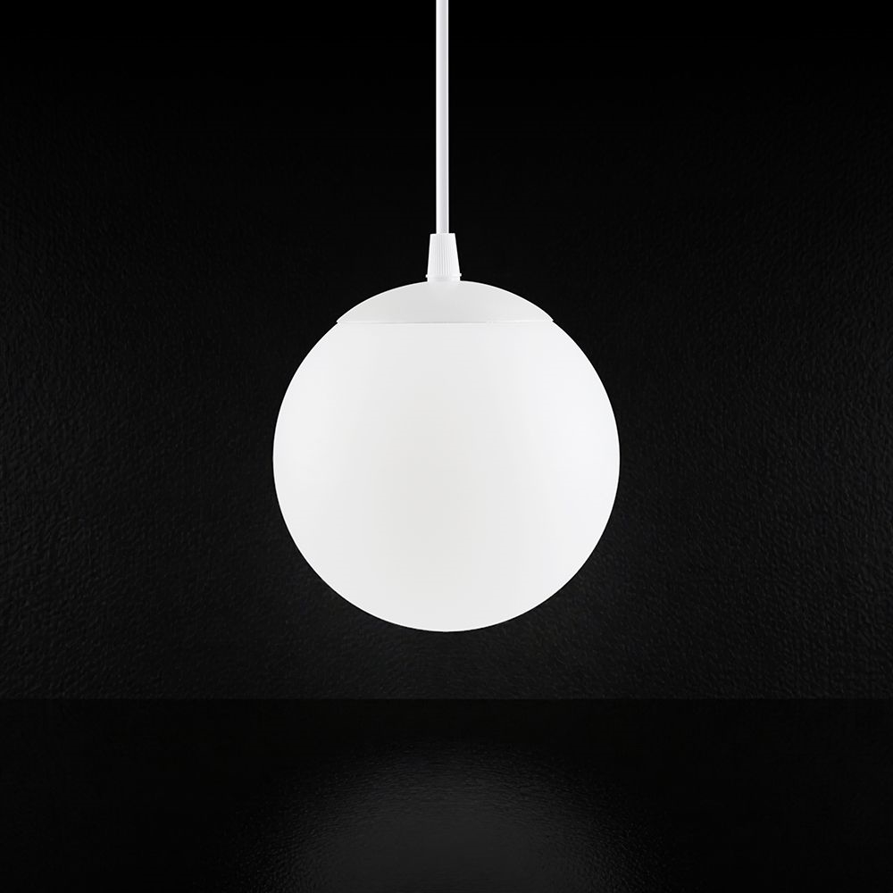 Stylowa i nowoczesna lampa wisząca LED z wbudowanym źródłem światła, przeznaczona do zastosowań wewnętrznych. Minimalistyczna, kulista forma oraz eleganckie białe wykończenie sprawiają, że oprawa doskonale wpisuje się w nowoczesne aranżacje wnętrz mieszkalnych i komercyjnych. Długość przewodu umożliwia wygodny montaż nad stołami, blatami oraz w strefach użytkowych.