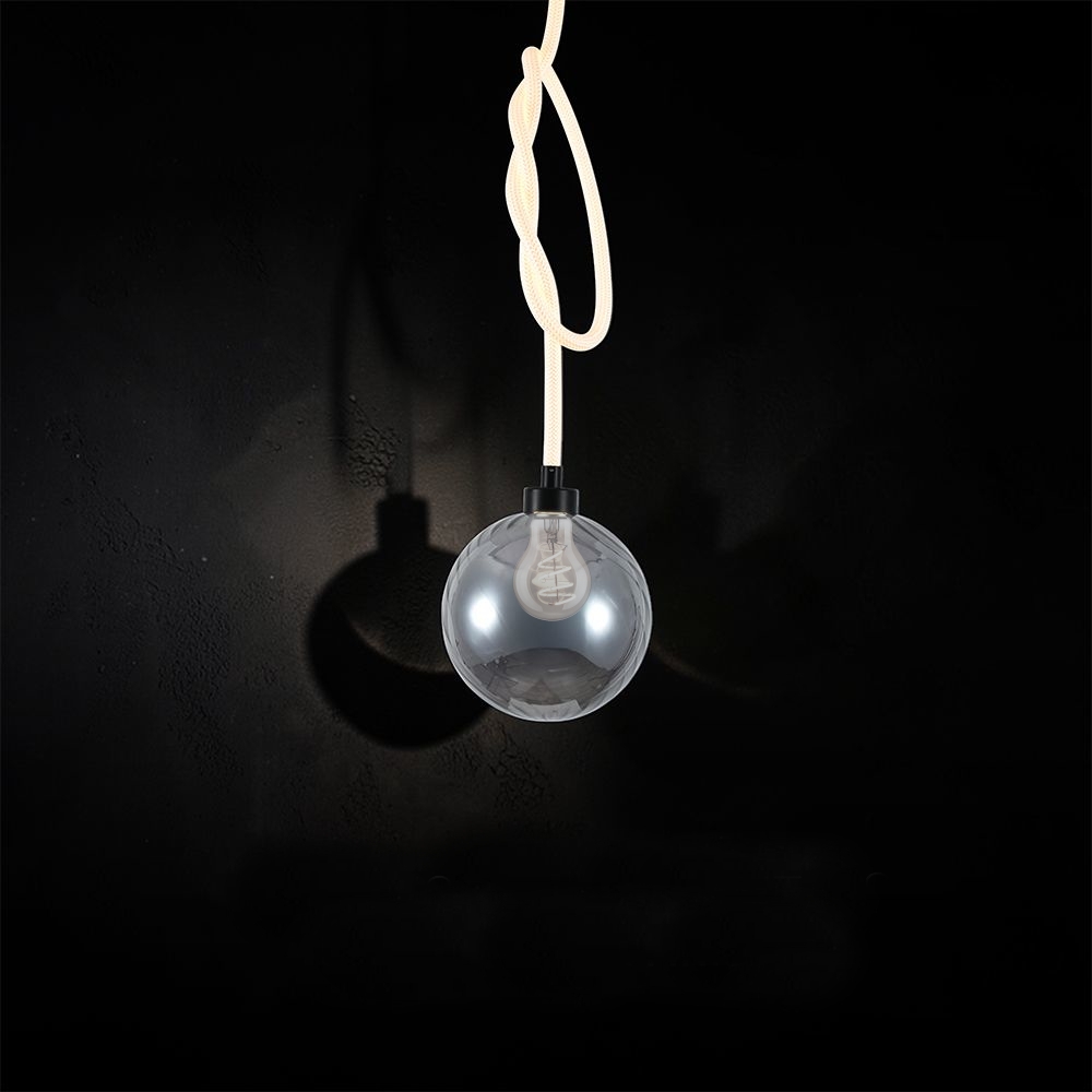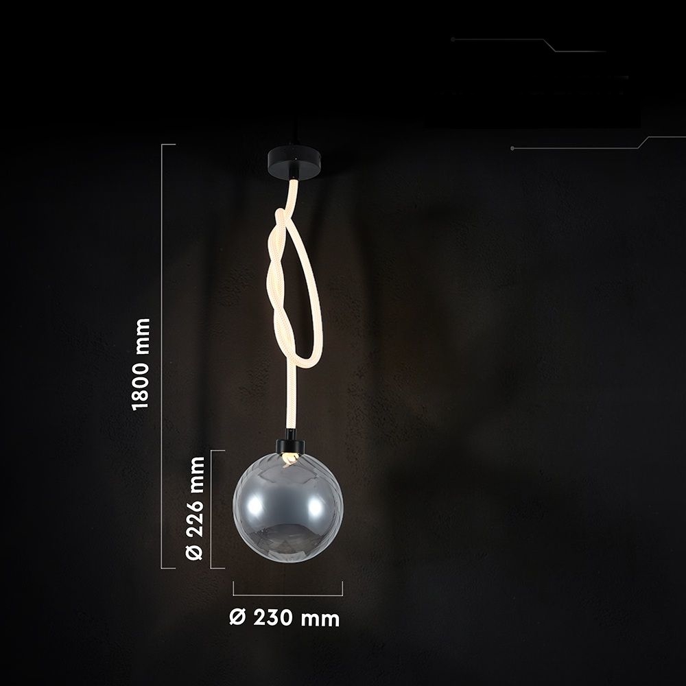 Designerska lampa wisząca LED o nowoczesnej formie, łącząca eleganckie wykończenie z funkcjonalnym oświetleniem wnętrz. Charakterystyczny klosz w kolorze smoke (przydymione szkło) w połączeniu z dekoracyjnym przewodem tworzy efektowny element aranżacyjny, idealny do przestrzeni o podwyższonym standardzie. Wysoka jakość wykonania z metalu i szkła zapewnia trwałość oraz estetyczny wygląd.